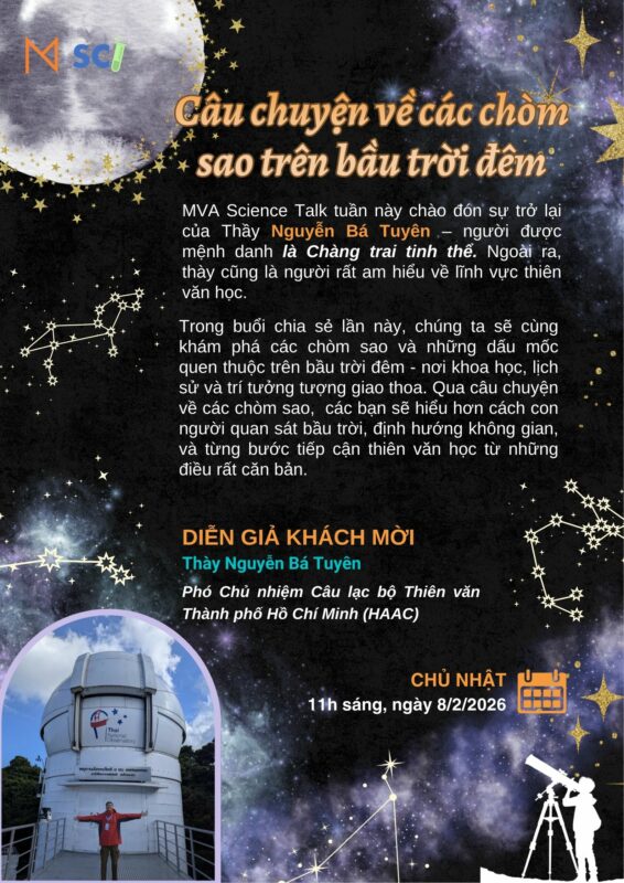 Mời các bạn cùng tham gia buổi trò chuyện với MVA Science Talk Câu chuyện về các chòm sao trên bầu trời đêm tuần này!