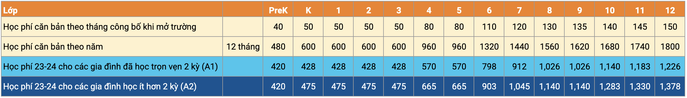 • Lớp K và Tiểu học (1-2-3)