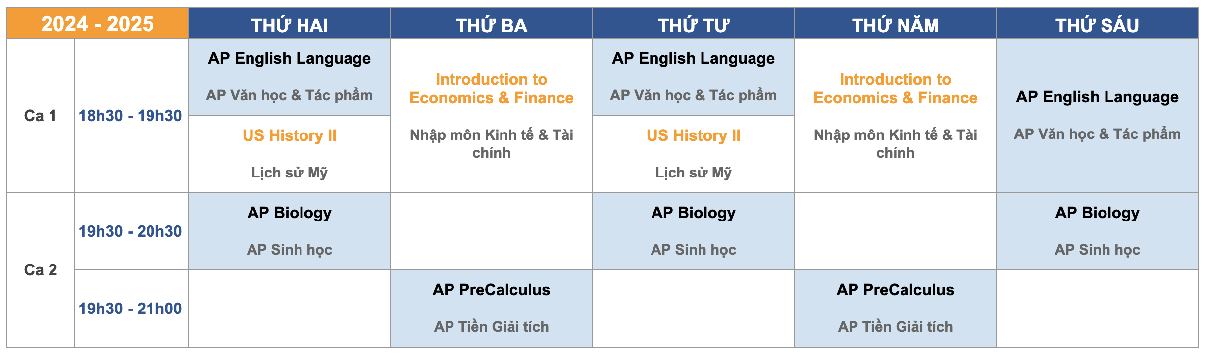 • Lịch học